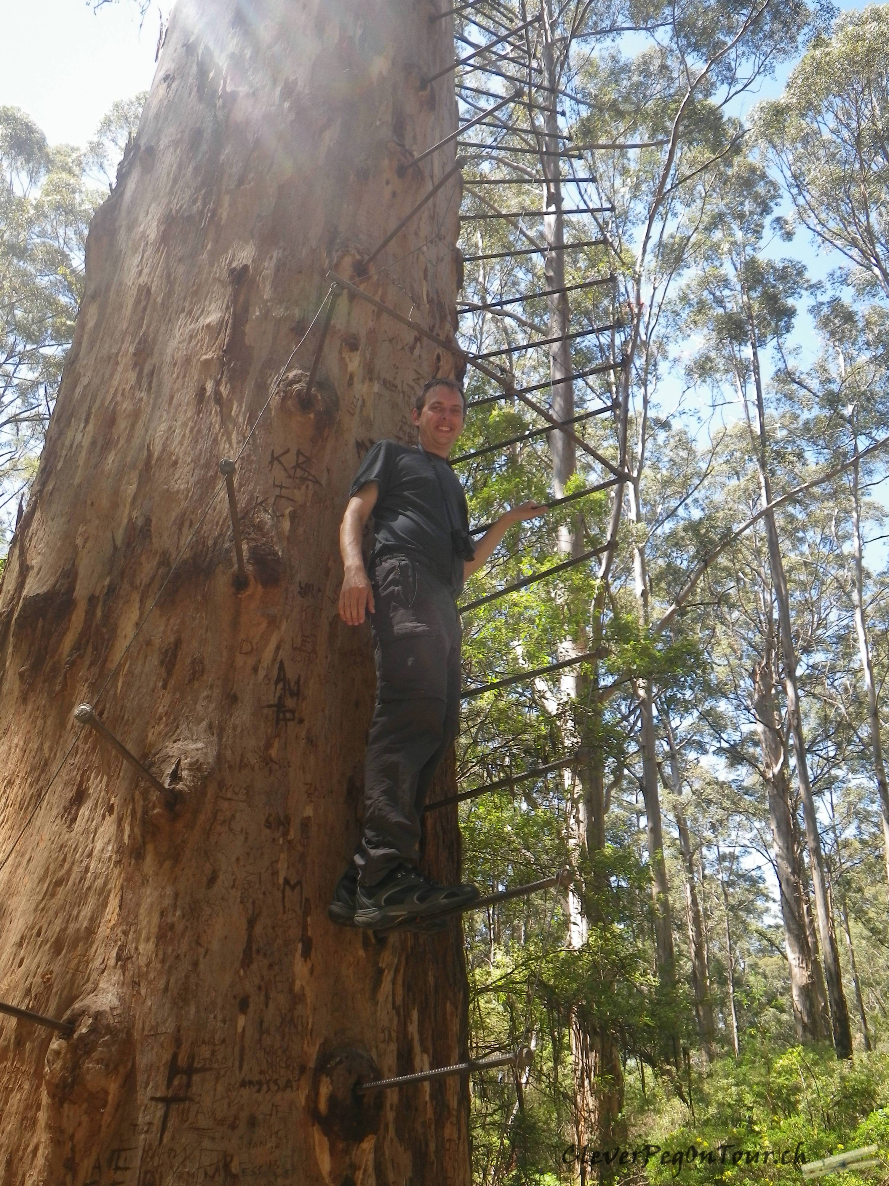 Der Gloucester Tree, ein Karribaum, ist über 70 Meter hoch und ist der höchste Baum der Welt zur Brandausschau. Zu finden ist dieser Baum im Gloucester Nationalpark in der Nähe von Pemberton. Bruno war so mutig und kletterte bis zur 61 Meter hohen Aussichtsplattform hoch.
