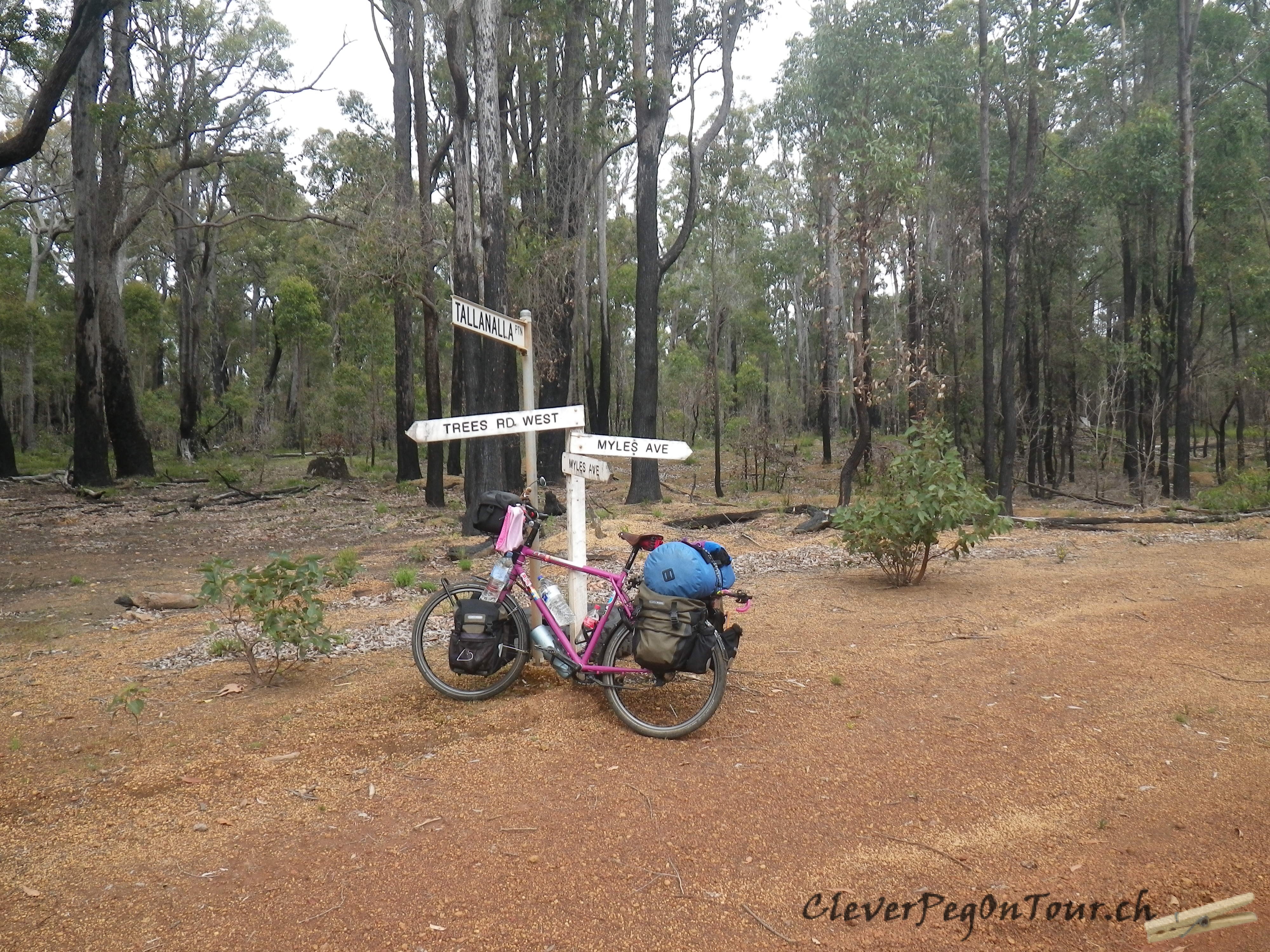Nach unserem Abstecher auf die Schaffarm ging es von Dwellingup dann wieder auf dem Munda Biddi Trail weiter. “Munda Biddi” heisst in der Noongar Aboriginal Sprache: “Weg durch den Wald”.