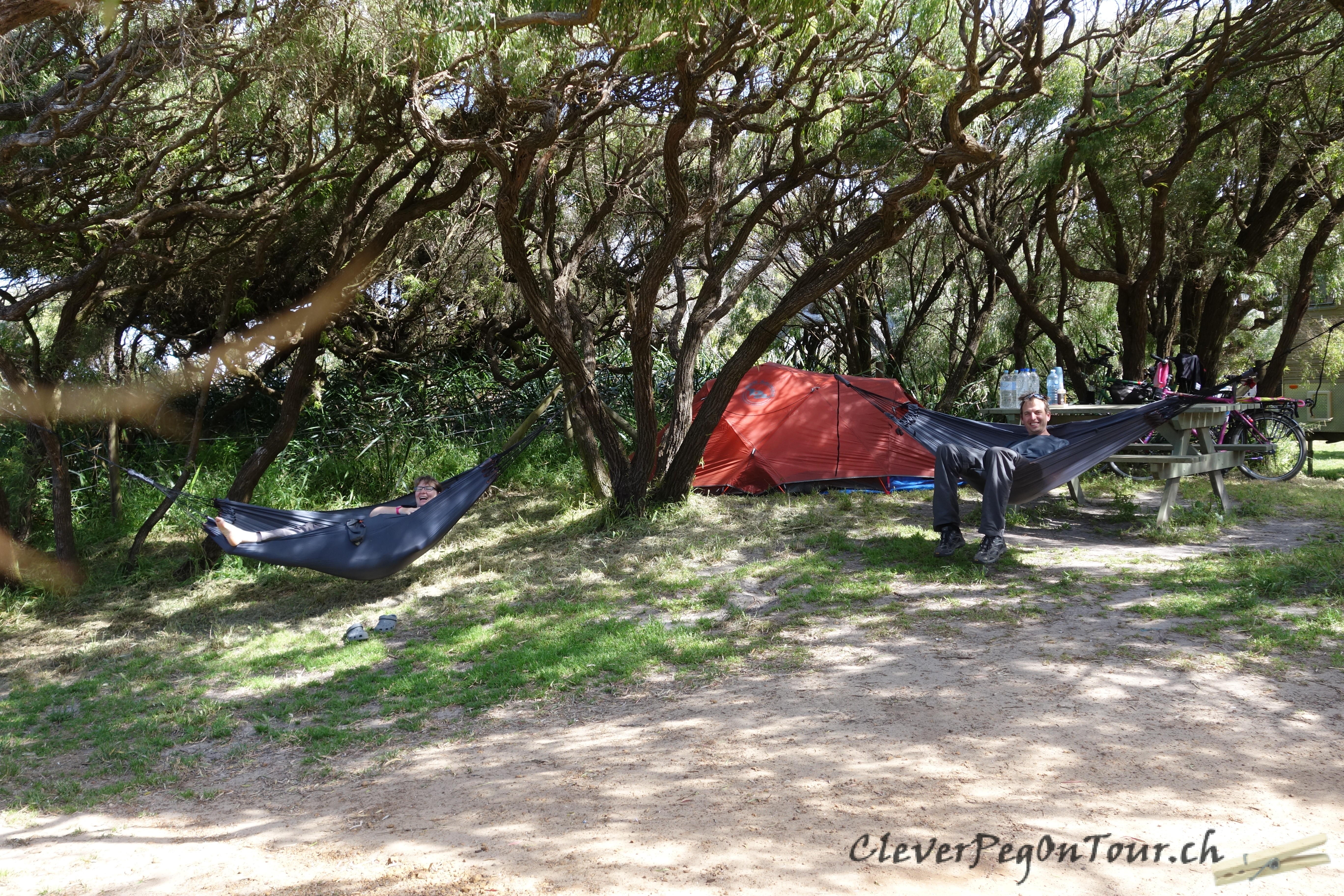 Der sonst schon sehr sandige Pfad verwandelt sich in eine Schlammpiste und wir sanken ständig ein. Mit ein bisschen Fluchen und Schimpfen schafften wir es dann doch noch. Klatschnass in Walpole angekommen, mussten wir feststellen, dass die Jugendherberge ausgebucht war. Doch wir hatten Glück. Terry und Murray, zwei Australier, welche wir immer wieder auf dem Trail getroffen haben, waren ebenfalls in der Jugendherberge und offerierten uns spontan bei ihnen im Zimmer zu übernachten. Nochmals herzlichen Dank an Terry und Murray!