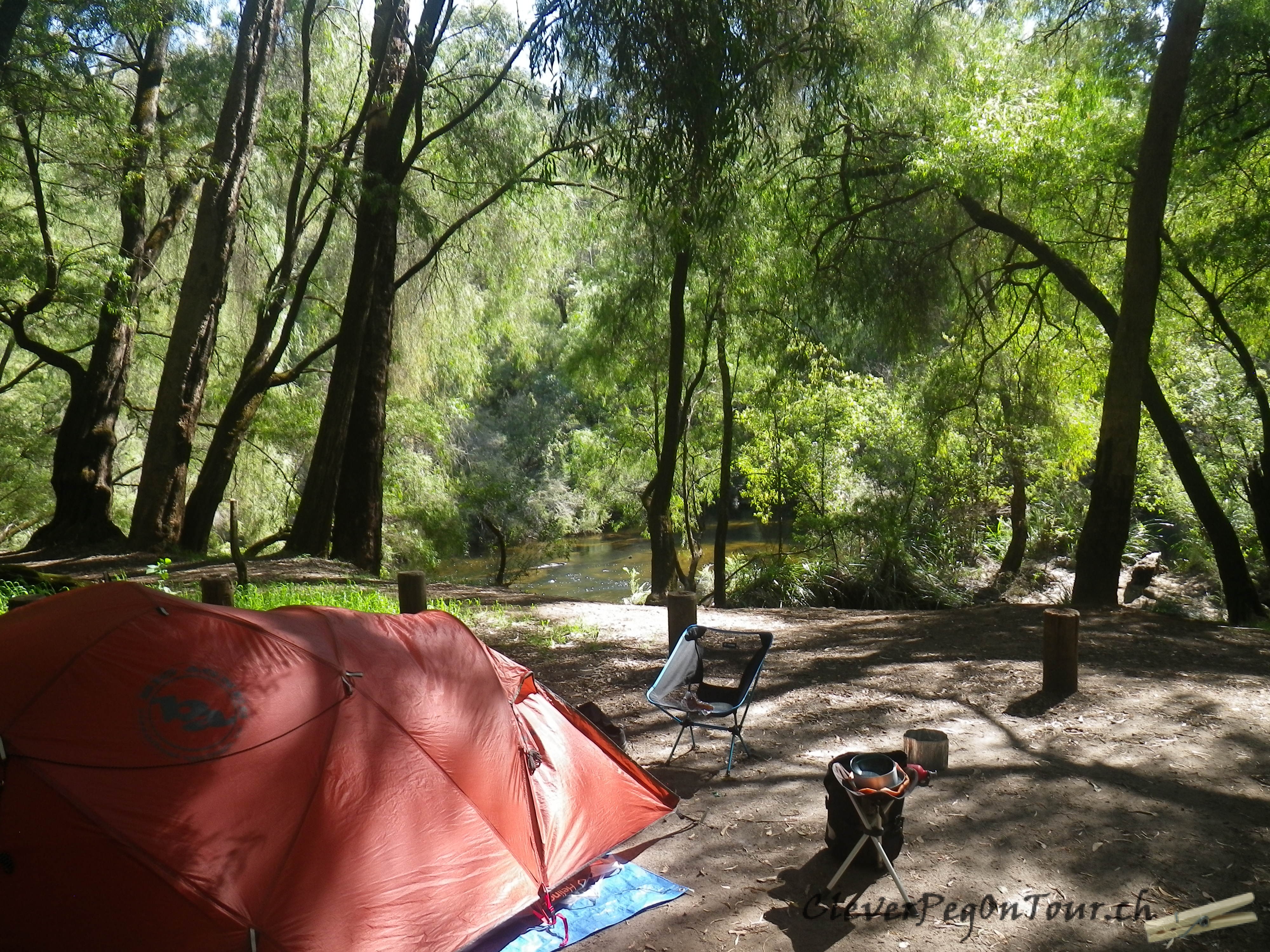 An so lauschigen Plätzchen wie diesem, lässt es sich gut campieren. Hier sind wir am Honeymoon Pool in der Nähe von Collie, WA.